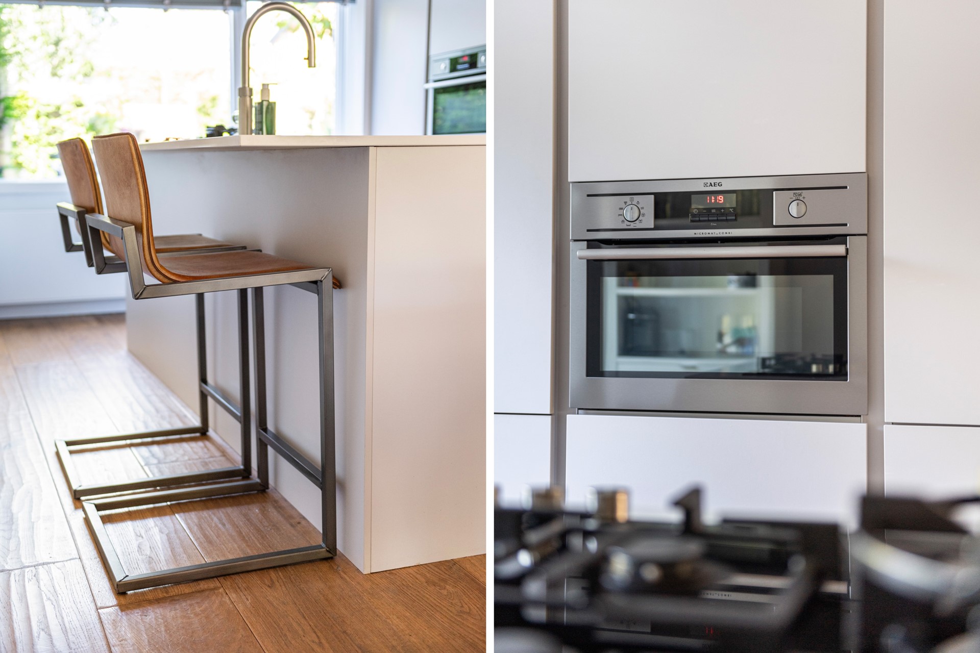 - Moderne strakke keuken met composiet blad de diverse inbouwapparatuur dateert uit 2015