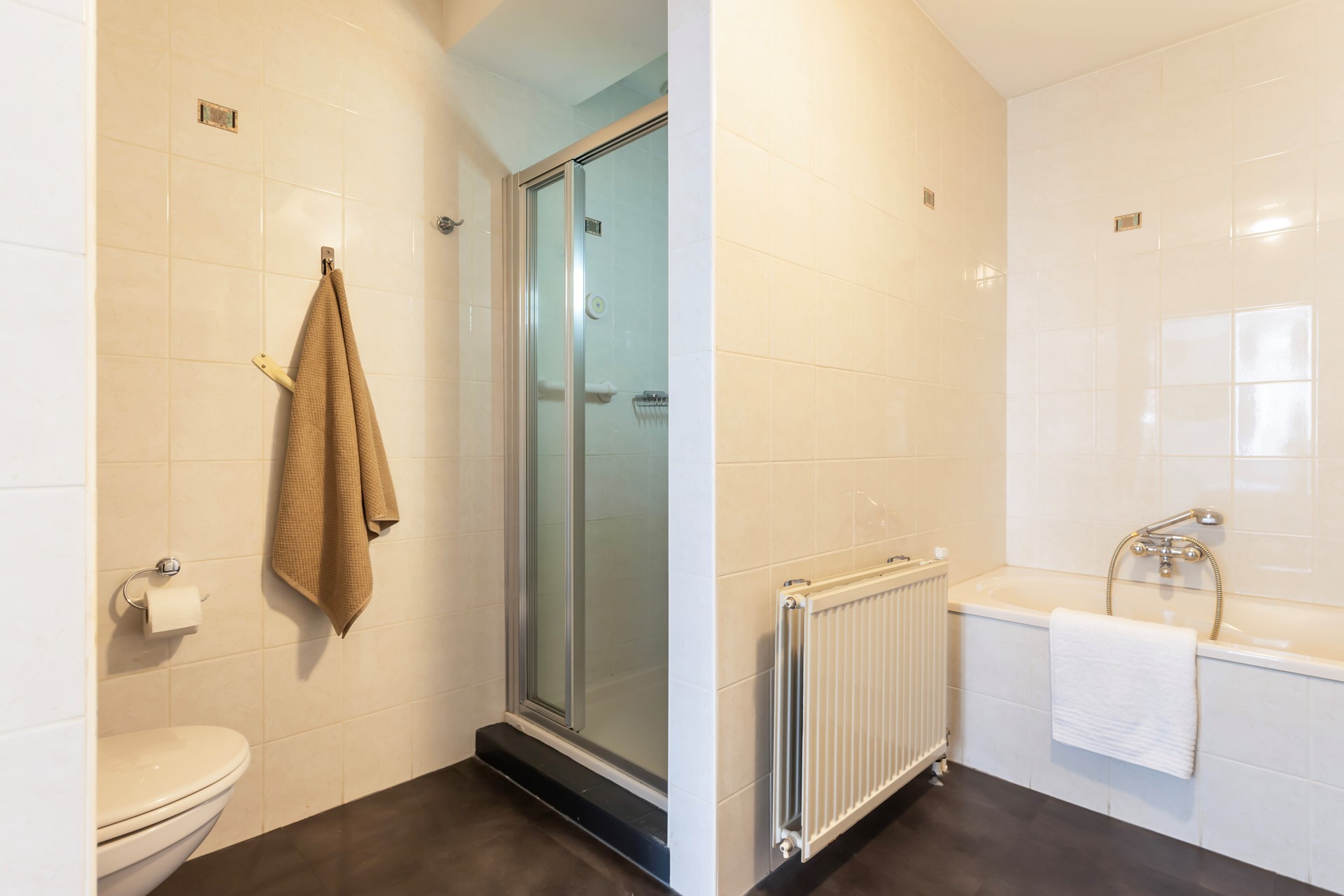 Vanuit de eerder benoemde ruime hal worden de twee slaapkamers (voorheen drie, eventueel weer makkelijk terug te brengen in oude staat). De masterbedroom is achtergelegen en is voorzien van een inbouwkast en een ruime badkamer ensuite met o.a. douche, ligbad, toilet en dubbel wastafelmeubel. Ook beschikt deze kamer over een smal balkon voor het bijhouden van de ramen of om bijvoorbeeld beddengoed te luchten. De andere kamer (voorheen twee) is ruim en voorzien van een grote inbouwkast. De hal biedt toegang tot een 2de badkamer welke is voorzien van douche en wastafel.