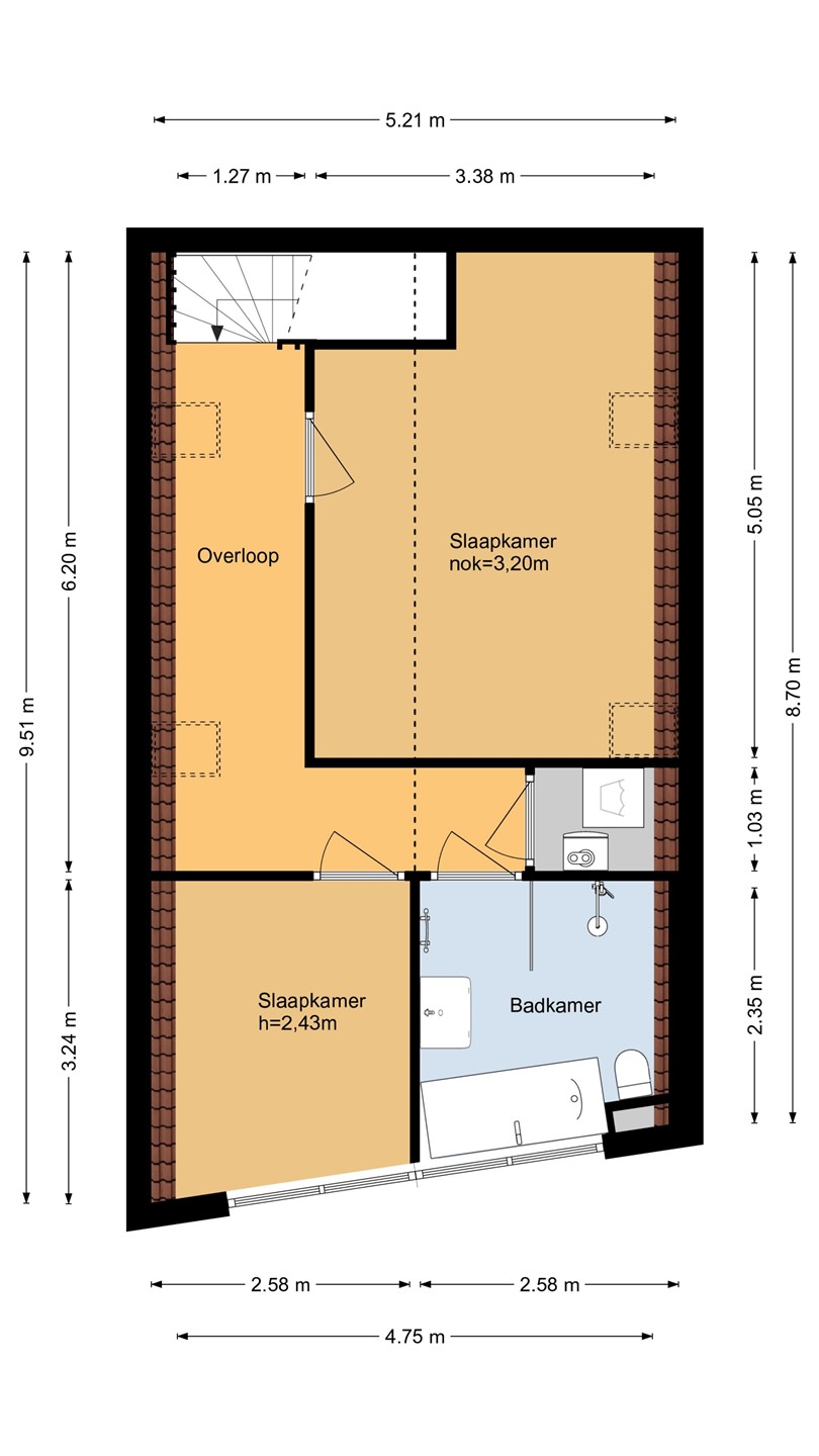 Via een nette trap bereikt u de lange, lichte overloop met zichtbare authentieke balken. Aan de voorzijde bevindt zich een slaapkamer en de royale badkamer in de kleurstelling wit en antracietgrijs, voorzien van een ligbad, inloopdouche, wastafelmeubel, hangend toilet en designradiator. De master bedroom aan de achterzijde is ruim en licht, eveneens met fraaie balken. Vanaf de overloop is ook de wasruimte bereikbaar, waar de CV-ketel is geplaatst. Ook deze verdieping is strak gestuct en voorzien van dezelfde laminaatvloer welke drempelloos is doorgelegd.