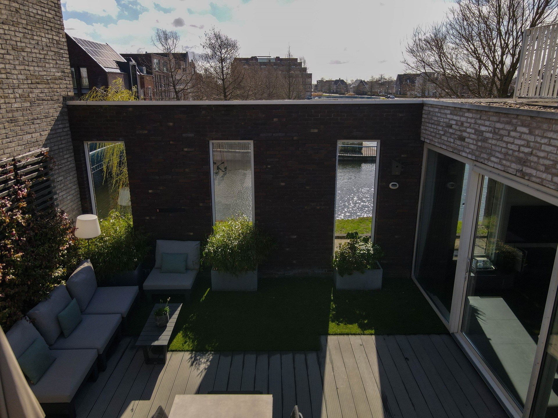 De sfeervolle daktuin biedt volop privacy en ruimte om te genieten van borrels, barbecues en spel. Daarnaast is er een ruime gemeenschappelijke binnentuin waar u gebruik van mag maken. De daktuin ligt op het zuidoosten en heeft een achterom. In de afgesloten parkeergarage – te openen met een afstandsbediening – zijn twee privéparkeerplaatsen beschikbaar, en rondom het huis is er eveneens voldoende parkeergelegenheid.