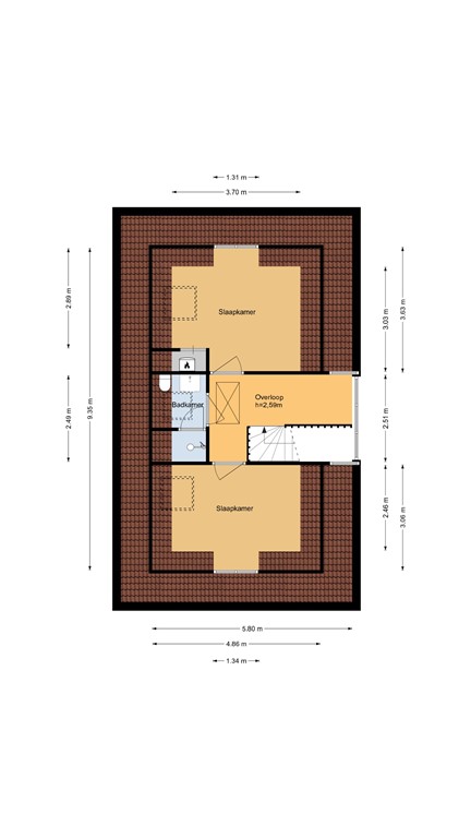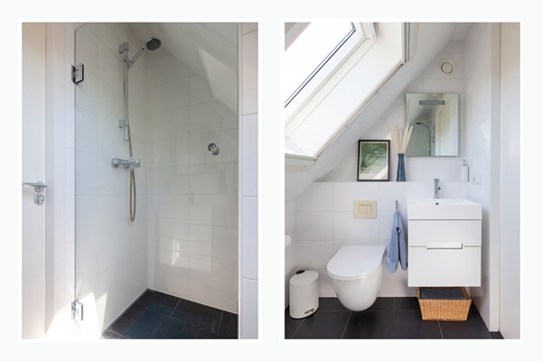 Via de open trap wordt de uiterst lichte voorzolder bereikt. Op deze overloop kan met een gemak een additionele werkplek gesitueerd worden. Verder biedt deze overloop toegang tot twee slaapkamers, welke beide zijn voorzien van airconditioning en de 2de badkamer. Deze badkamer is voorzien van een douche, hangend toilet, wastafelmeubel en ook met daglichttoetreding. De CV-ketel bevindt zich achter een schot op de aan de achterzijde gelegen slaapkamer. Via een luik in het overloop plafond is de vlieringruimte bereikbaar.