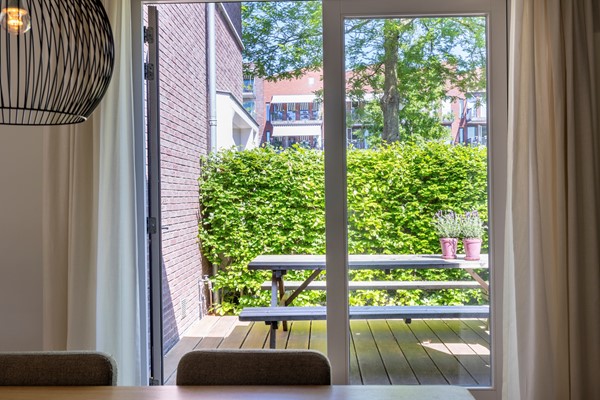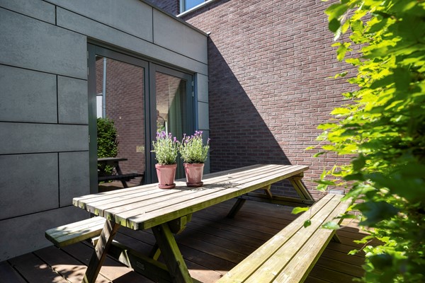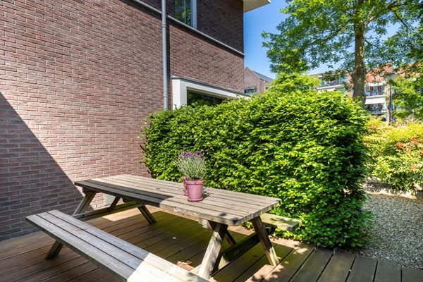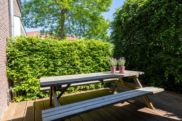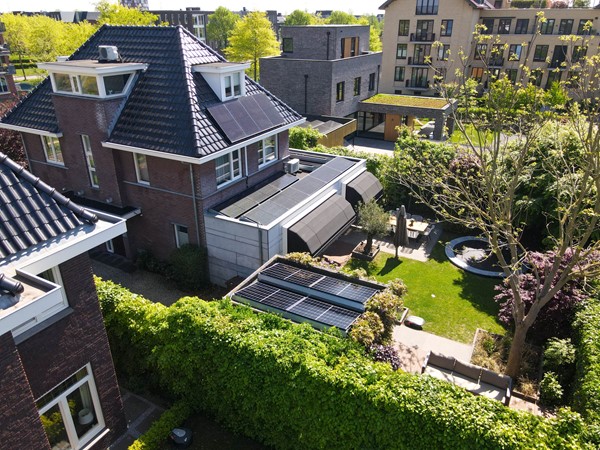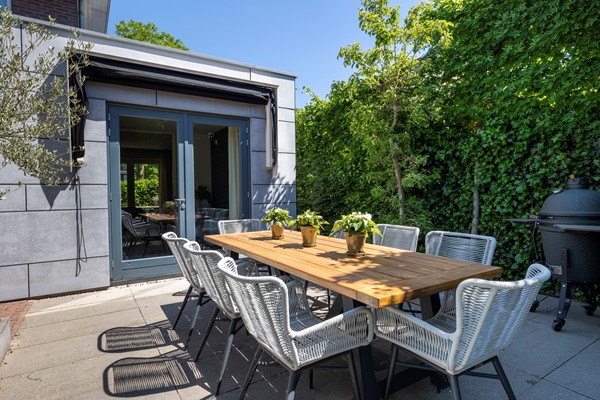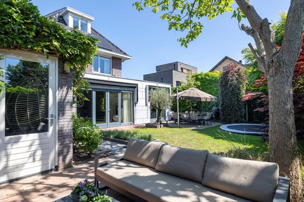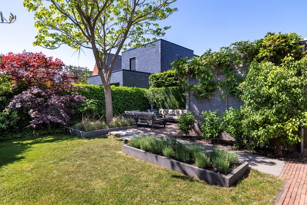 De door een architect ontworpen en aangelegde tuin is uiterst fraai, biedt volop privacy, is ruim en voorzien van diverse terrassen. Er is dus ten alle tijden een zon- of schaduwplek te vinden. De achtertuin is zuid georiënteerd, voorzien van een geïntegreerde sproeier, robot-maaier en bekabeling tbv tuinverlichting is aanwezig.