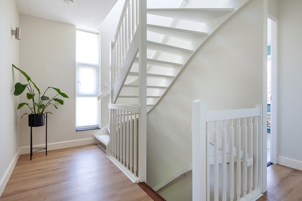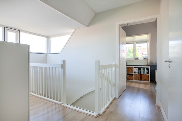 Via de trapopgang met massief eiken traptreden wordt de speelse overloop bereikt. Deze overloop biedt toegang tot twee zeer riante slaapkamers (voorheen drie), een ruim badkamer en een separate wasruimte.