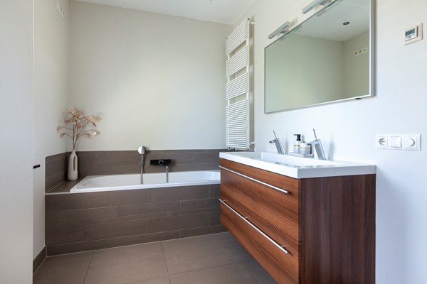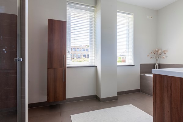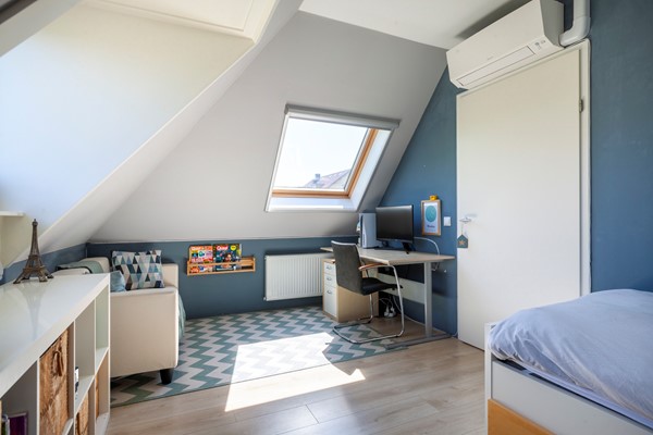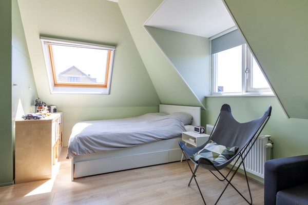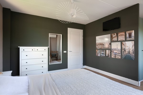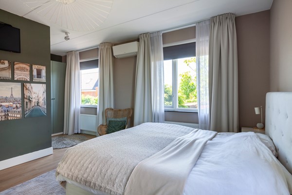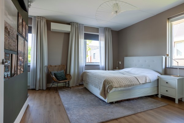 De master-bedroom bevindt zich aan de achterzijde van de woning, deze is royaal, voorzien van een vaste kastenwand (walkin-closet) en airconditioning. De badkamer is voorzien van een douche, ligbad, dubbel wastafelmeubel, hangend toilet, opbergkast, design-radiator en vanzelfsprekend daglichttoetreding. De andere ruime slaapkamer bevindt zich aan de voorzijde van de woning (dit waren voorheen twee kamers, desgewenst is dit weer eenvoudig terug te brengen).