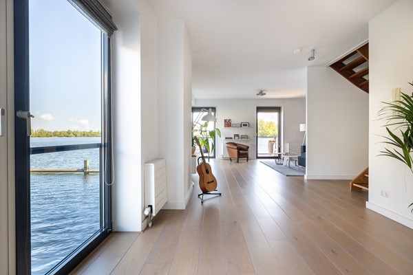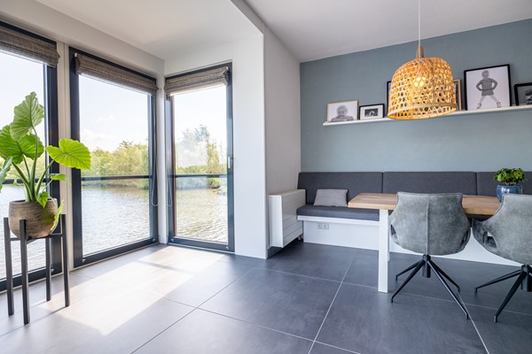 Riante & vooral lichte woonkamer met een heerlijk vlonder-terras boven het water! Het uitzicht vanaf hier is werkelijk adembenemend en altijd anders.