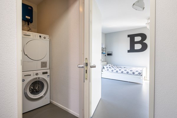Via de hardhouten trap wordt de bovenste etage bereikt. De overloop hier biedt toegang tot twee ruime slaapkamers en de berg-/wasruimte. De bergruimte is zeer ruim en voorzien van aansluitpunten voor de wasmachine en de droger. De vierde slaapkamer is gelegen aan de voorzijde en is voorzien van een modern wastafelmeubel. Aan de achterzijde is de vijfde slaapkamer gelegen, hier veel lichtinval door de speelse raampartijen aan beide zijden. Vanuit deze kamer wederom een uiterst fraai uitzicht over de plas. Ook op deze etage een grijze linoleum vloer en de wanden en het plafond zijn voorzien van spuitwerk. In de ruime berging op deze etage is eventueel een 2de douche te creëren.